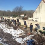 Plantation d'une haie mélangée auxiliaire d'agriculture, brise vent et fruitière