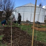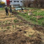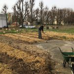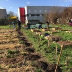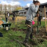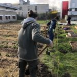 Plantation d'une haie fruitière pour rendre le jardin plus accueillant et attirer les auxiliaires d'agriculture.