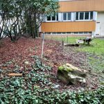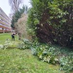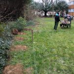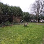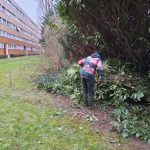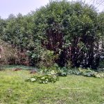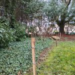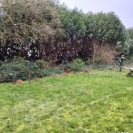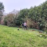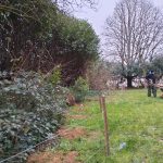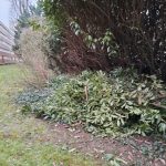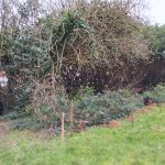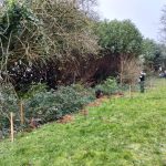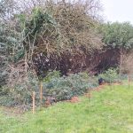 Petit entretien d'hiver : pose d'une clôture, plantations complémentaires et taille de la haie de Laurier cerise qui tente de prendre la lumière de la haie mélangée.