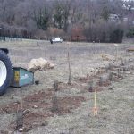 Plantation d'une haie fruitière perpendiculaire à la route de boutervilliers pour créer un linéaire de cueillette et agrémenter la bordure du champs du futur agriculteur qui viendra s'installer sur cette parcelle.
