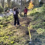 création participative d’une haie mélangée de type ripisylve au nord du lycée contre le mur mitoyen avec l’ENS et de vivaces aromatiques à l’intérieur de la cour Est