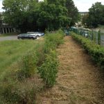 L’autre parcelle se situe en bordure de l’établissement, le long de la rue du docteur Schaffner. 300 jeunes plants forestiers y ont été plantés sur 100 mètres de linéaire. Un semis de fleurs des champs à l’hiver 2018 est venu enrichir la haie d’origine, qui présente un très bon taux de reprise.